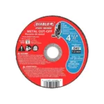 Diablo’s premium metal cut-off discs provide superior performance and increased productivity. Featuring a premium aluminum oxide blend, these discs cut through material faster than other cut-off discs and offer an extra long cutting life. Fully reinforced for use in hand-held cut-off work. Ideal for use when working in hard to reach areas.