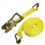 2″ wide polyester web by 30′ long with ratchet assembly and E spring fitting.