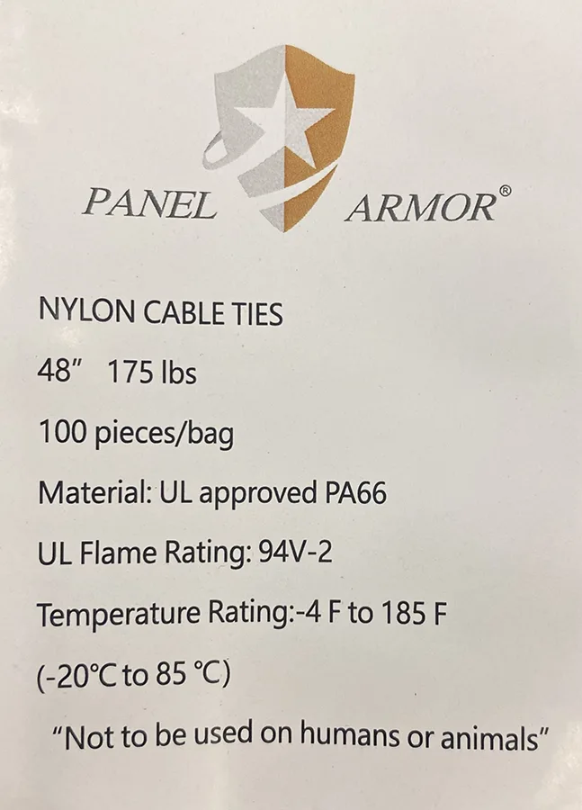 Panel Armor’s 48″ Black Cable Ties