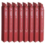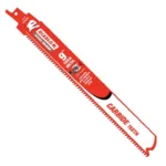 Steel Demon carbide 8 TPI thick metal cutting recip blade delivers 50x longer cutting life and clean finish in strut, pipe, stainless steel and all other metals ranging in 1/16″ to 5/16″ thickness.