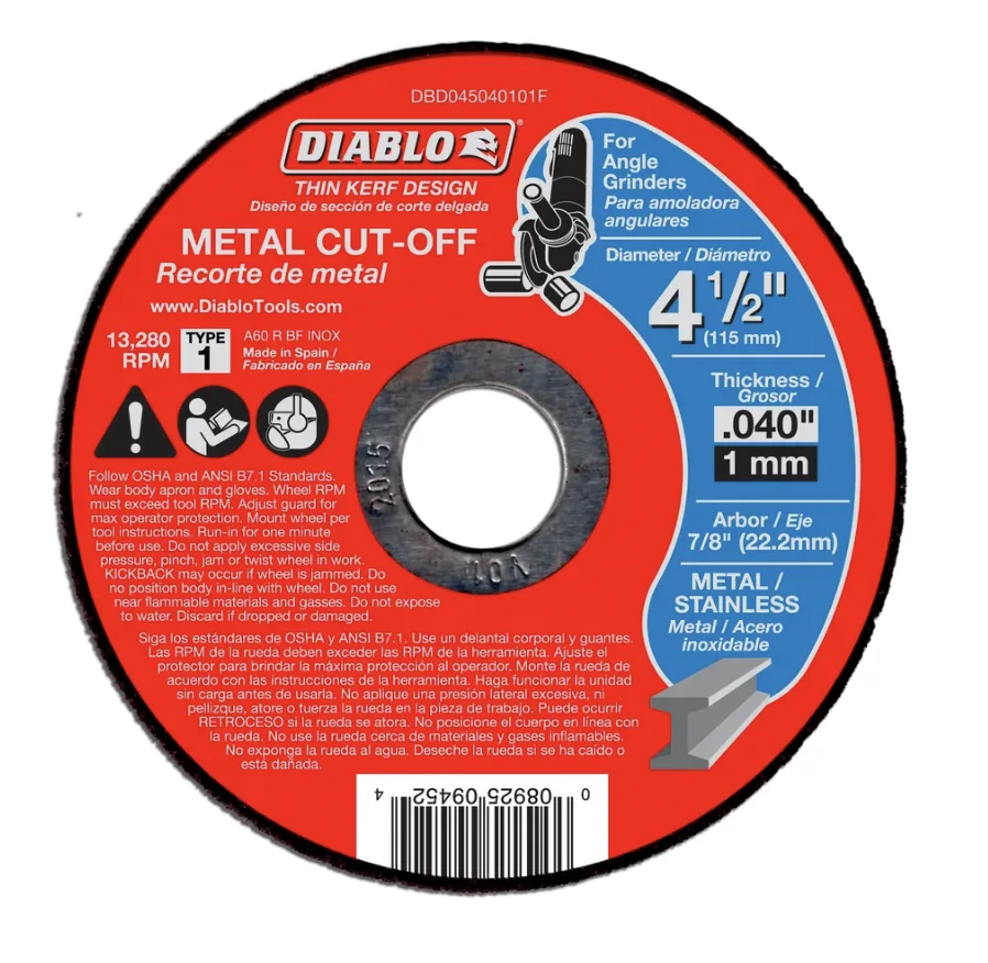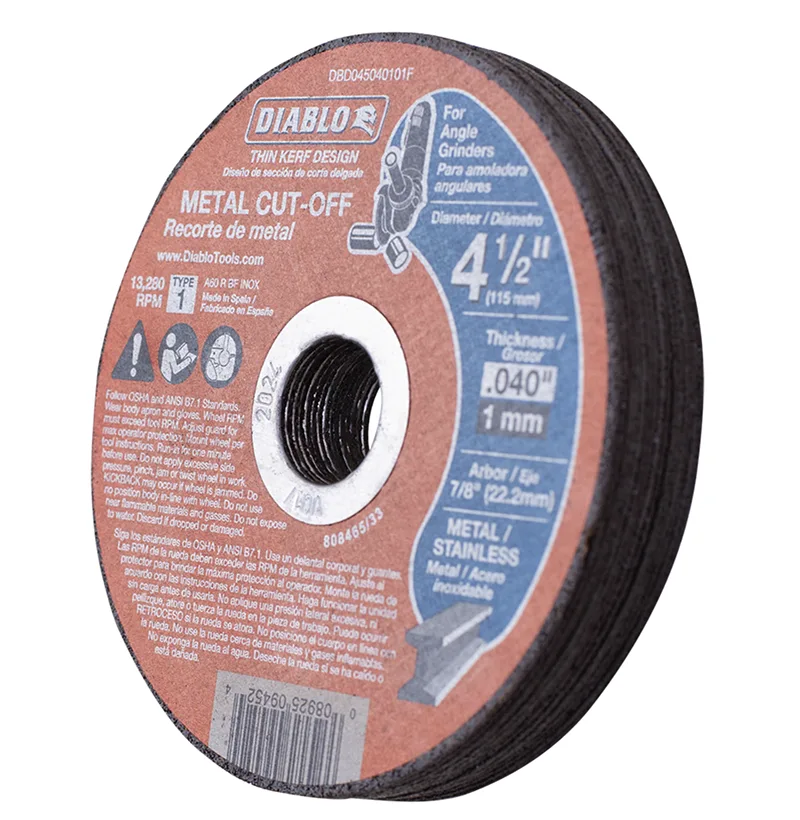 Diablo 4 1/2 Inch Metal Cut-Off Disc .040 Thick – 7/8 Inch (22.2Mm) Arbor – Type 1 Hub – Thin Kerf Design – Premium Aluminum Oxide Blend For Use On Metal Materials – 13,280 Max Rpm – 15 Pack