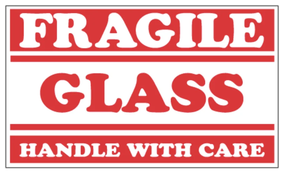 - Fragile – Glass – handle with Care label.