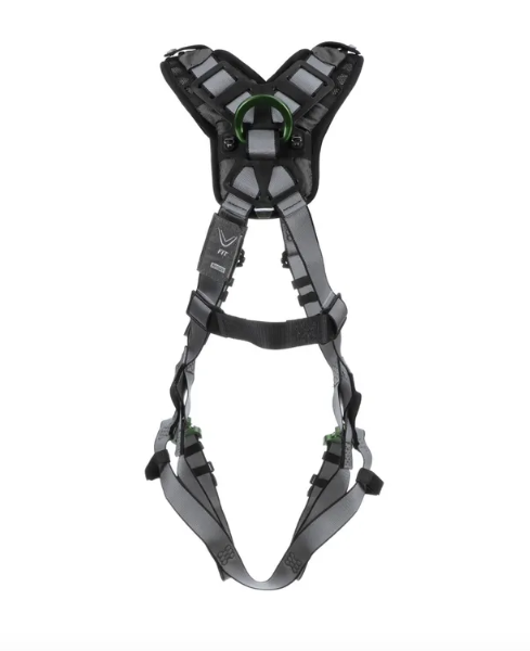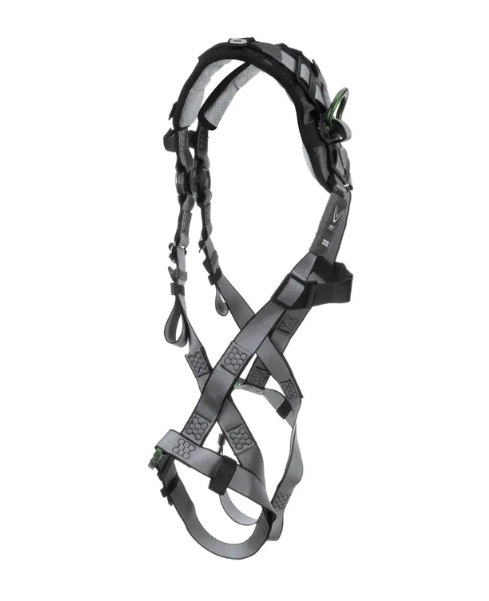The V-FIT full-body harness allows you to focus on your job – not your harness. Featuring a patent-pending RaceFLEX buckle, bulky chest straps are eliminated for a close and comfortable fit. The athletic cut of the V-FIT harness contours to the body, improving upper torso movement on the job, while soft shoulder padding helps to eliminate pressure points and chafing for all-day comfort. Back and Chest D-Rings. Quick Connect Leg Straps.