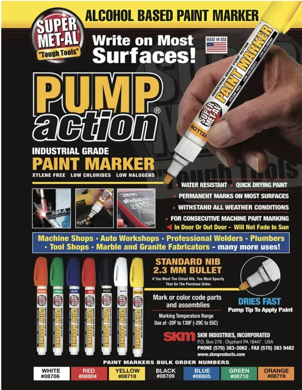 Designed to work in the toughest environments imaginable. Excellent for use in a wide variety of applications, both indoor and outdoor. Ideal for any surface including all types of metal, glass, wood, rubber, plastic, and more. Rugged, wide-barrel construction delivers a large paint supply.
