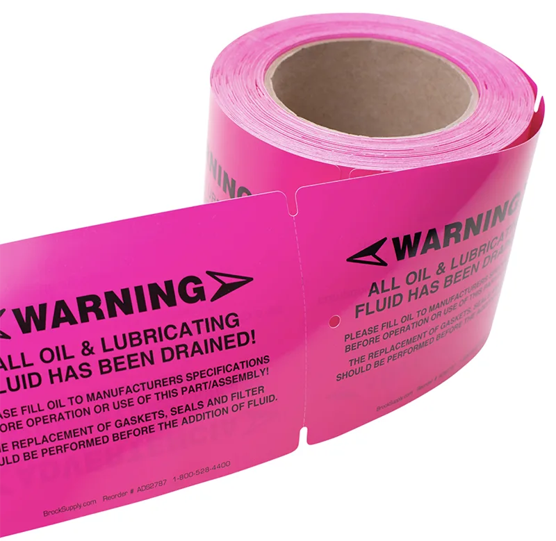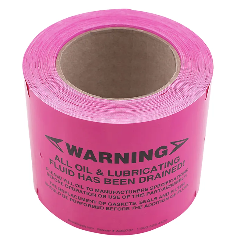 ‘Warning – Fluids Drained’ Pre Installation Tags